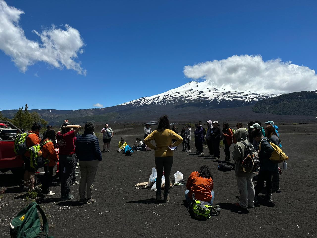 Durante el campamento, tercera y última etapa del proceso de construcción de la guía, las participantes pudieron visitar los volcanes Lonquimay y Llaima, conociendo en terreno coladas de lava, paso de lahar y creación del cono Navidad. Además, se realizaron dinámicas sobre mapas de peligro volcánico y experimentos demostrativos que tuvieron como eje conocer la naturaleza de un volcán y cómo estos se monitorean.