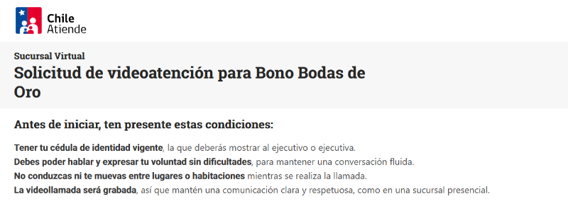 Además de pedirlo en oficinas de ChileAtiende, el bono también puede ser solicitado a través de una videoatención en la Sucursal Virtual del organismo. Deben contar con un computador o teléfono con conexión estable a Internet. Pincha la imagen para solicitarla.