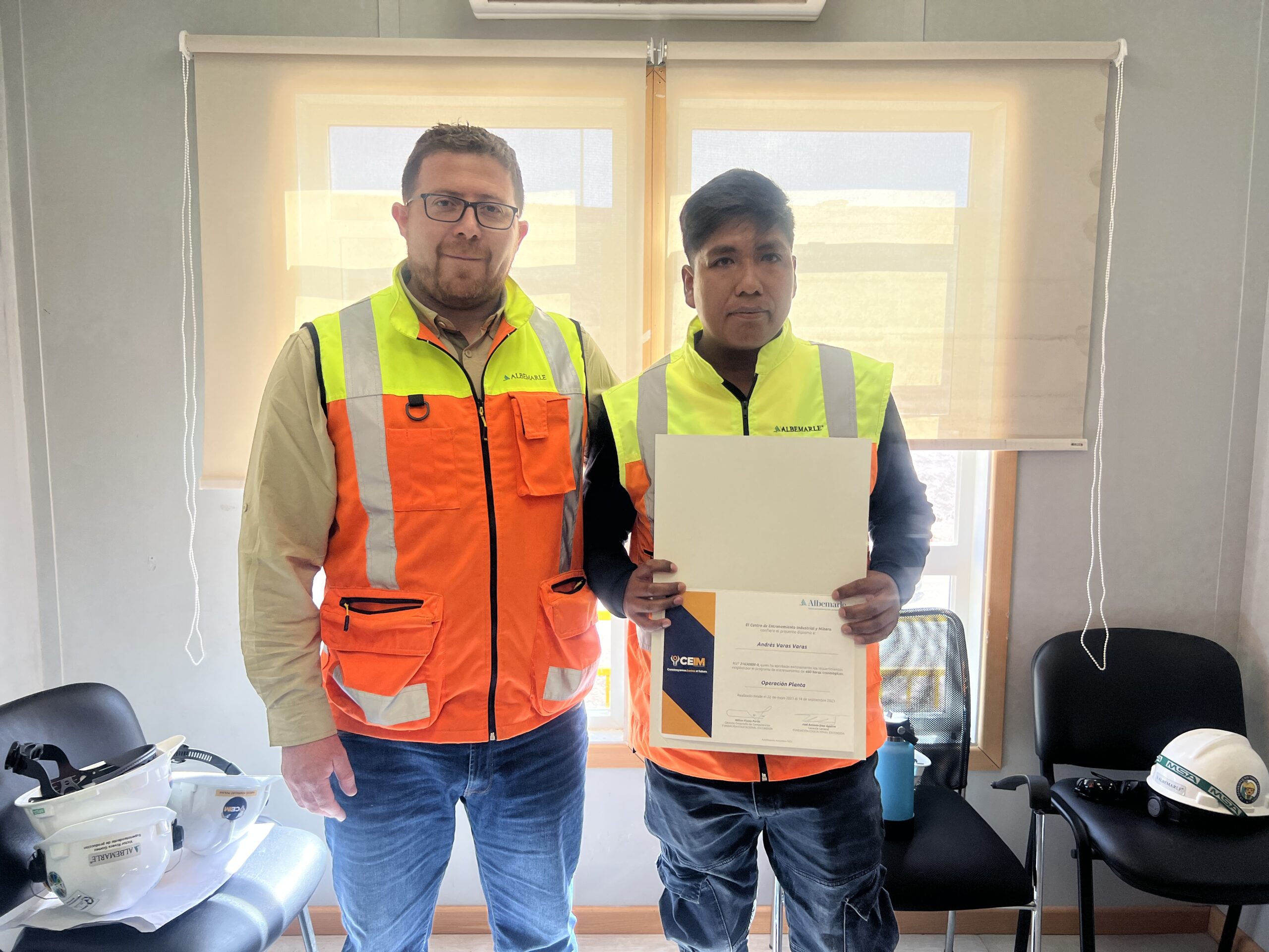 Marcos Rodríguez, jefe del área de Procesos y Mecánica Industrial del CEIM, comentó que “este hito representa el éxito del programa, sin embargo, para los estudiantes es un comienzo. Para nosotros es muy grato que personas que se entrenaron con nosotros, gracias a la confianza que nos dio Albemarle, ahora estén partiendo un largo camino en el que tienen sus competencias iniciales y que ahora tienen la oportunidad de seguir desarrollando”.