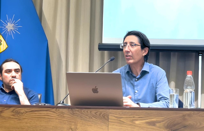 En concreto, los investigadores Ruiz del Solar y Estay presentaron la ponencia “Desafíos tecnológicos de la minería chilena y sus implicancias en la innovación y formación de personas”. La primera parte de esta presentación estuvo a cargo del Dr. Ruiz del Solar, quien subrayó la importancia de implementar tecnologías como la inteligencia artificial y la automatización en los procesos mineros, las cuales no solo mejoran la eficiencia y seguridad, sino que también reducen el impacto ambiental. Además, se refirió al manejo de datos mediante sensado en línea y aprendizaje automático, lo que optimiza la toma de decisiones e integra procesos en un modelo geo-minero-metalúrgico, potenciando la productividad y sostenibilidad de la industria.