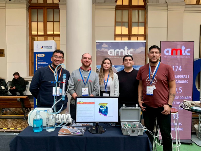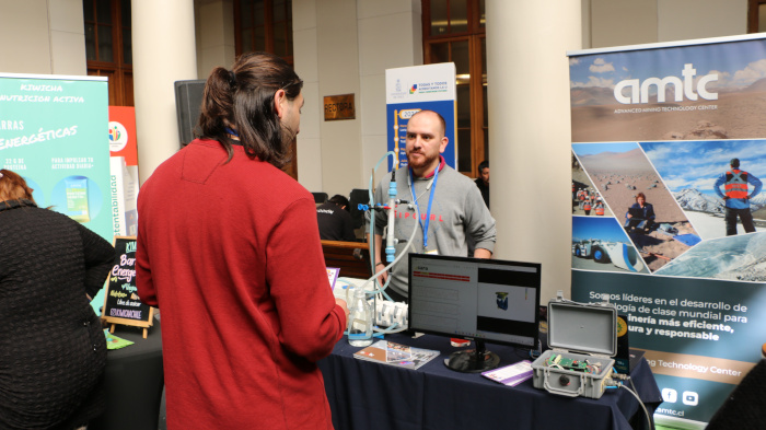 El mismo día lunes el AMTC fue parte del Hub de Innovación, instancia en que centros de la Universidad de Chile y empresas asociadas exhibieron a las y los asistentes algunos de sus proyectos avanzados y que además sirvió como espacio de networking e intercambio de experiencias. En la ocasión el AMTC mostró su primer prototipo del sistema LiSa (recuperación de agua desde salmueras hipersalinas) y el funcionamiento en tiempo real de algunos sensómetros utilizados en proyectos de exploración y caracterización del subsuelo.