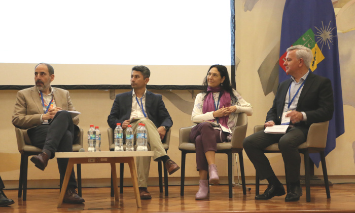 Tras las presentaciones, se realizó el panel de discusión “Avanzando en la articulación academia e industria minera: ¿Cómo acelerar la generación de tecnologías desde el laboratorio a la aplicación industrial?”, en el que se detallaron experiencias exitosas de colaboración entre empresas (ya sea mineras o proveedores de tecnología) con universidades y centros de investigación, además de proponer ideas para hacer más fluida dicha relación. El panel contó con Felipe Lagno en una segunda intervención; Rodrigo Cortés, gerente de Transferencia Tecnológica del AMTC; Helen Ipinza, jefa del Departamento de Iniciativas Orientadas al Desarrollo y la Innovación de la ANID; Francisco Lozano, gerente de Innovación de Antofagasta Minerals; Joao Araujo, Business Line Manager de Equipos de Carguío y Transporte Subterráneo para la Región Andina y Cono Sur de Sandvik, y, como moderadora, la Dra. Viviana Meruane, directora académica, de investigación e innovación de la Facultad de Ciencias Físicas y Matemáticas.