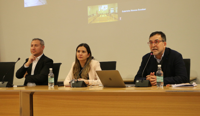 Juan Pablo Arévalo, de Aprimin; Gabriela Novoa, del AMTC, y Patricio Abarca, de la Universidad Finis Terrae.