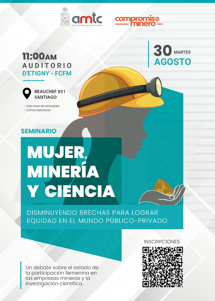 El evento, organizado por el Advanced Mining Technology Center con el apoyo de Compromiso Minero, contará con destacadas representantes del mundo académico y del sector minero para conducir la discusión sobre oportunidades, inclusión y brechas. Asimismo, en el seminario se entregarán reconocimientos a las ganadoras de los recientes concursos públicos de investigación científica que el AMTC abrió este año como parte de su programa de atracción de investigadoras, iniciativa enmarcada en el trabajo de su Unidad de Diversidad y Equidad de Género.