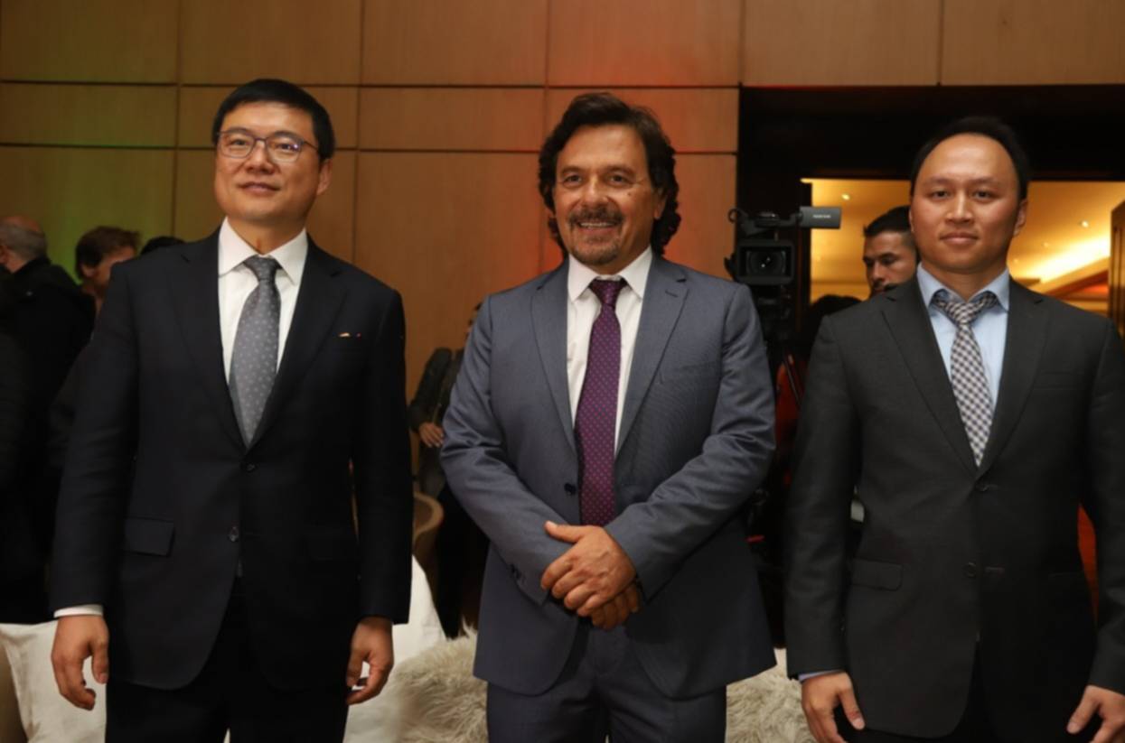 Xiaoshen Wang, Gustavo Sáenz y Jason Luo, en la inauguración del Proyecto Mariana en Salta.