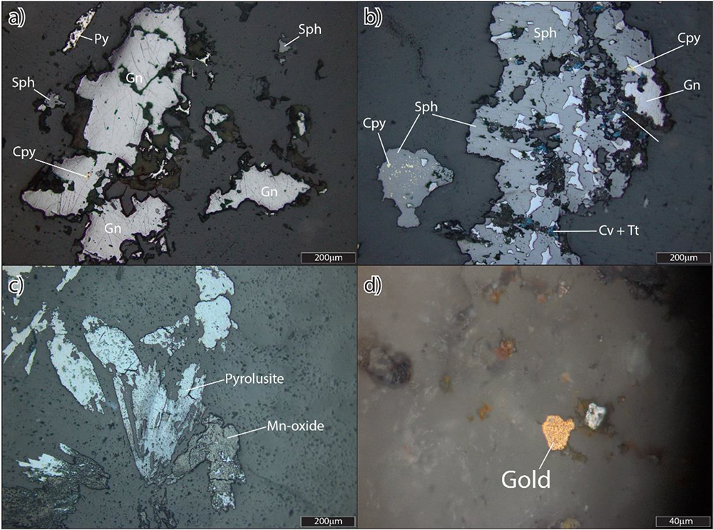 El Evento 2 es el principal evento de mineralización del Sistema de Vetas Paciencia. Los sulfuros (Figura 8) son principalmente pirita y marcasita, con sulfuros de zinc, cobre y plomo. La presencia de granos de oro libres (25 a 50 micrones) dentro de las partes oxidadas de las vetas sugiere que este metal probablemente esté asociado con pirita en las zonas primarias del depósito. Las leyes de oro más altas se registraron en estrecha asociación con este pulso de BPA; sin embargo, los eventos BxQ y BxSi también son importantes contribuyentes de oro.