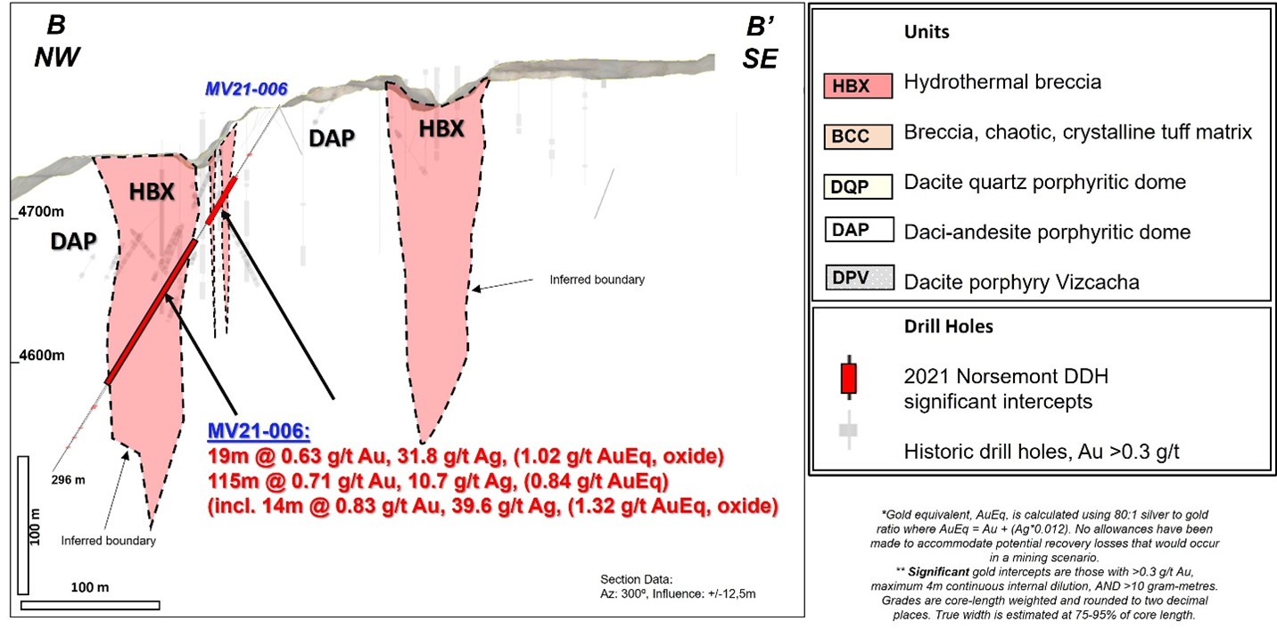 - La definición de un objetivo de pórfido de cobre listo para perforar que consiste en un gran corredor de alta capacidad de carga coherente que coincide con brechas de turmalina hidrotermal relacionadas con la intrusión en la superficie