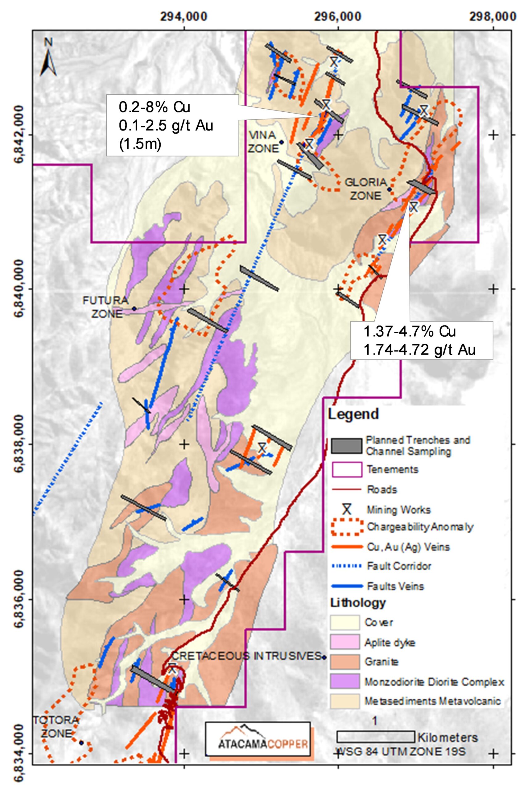 Gino Zandonai, director ejecutivo de Atacama Copper, dijo: «Este programa es la primera fase de un programa de trabajo más extenso en el proyecto de cobre y oro y está diseñado para recopilar información de objetivos adicional para complementar el trabajo histórico de mapeo, estudios geoquímicos y geofísicos que identificaron un número de zonas objetivo de alta prioridad en toda la propiedad para definir los mejores objetivos de perforación de la mineralización de cobre y oro».
