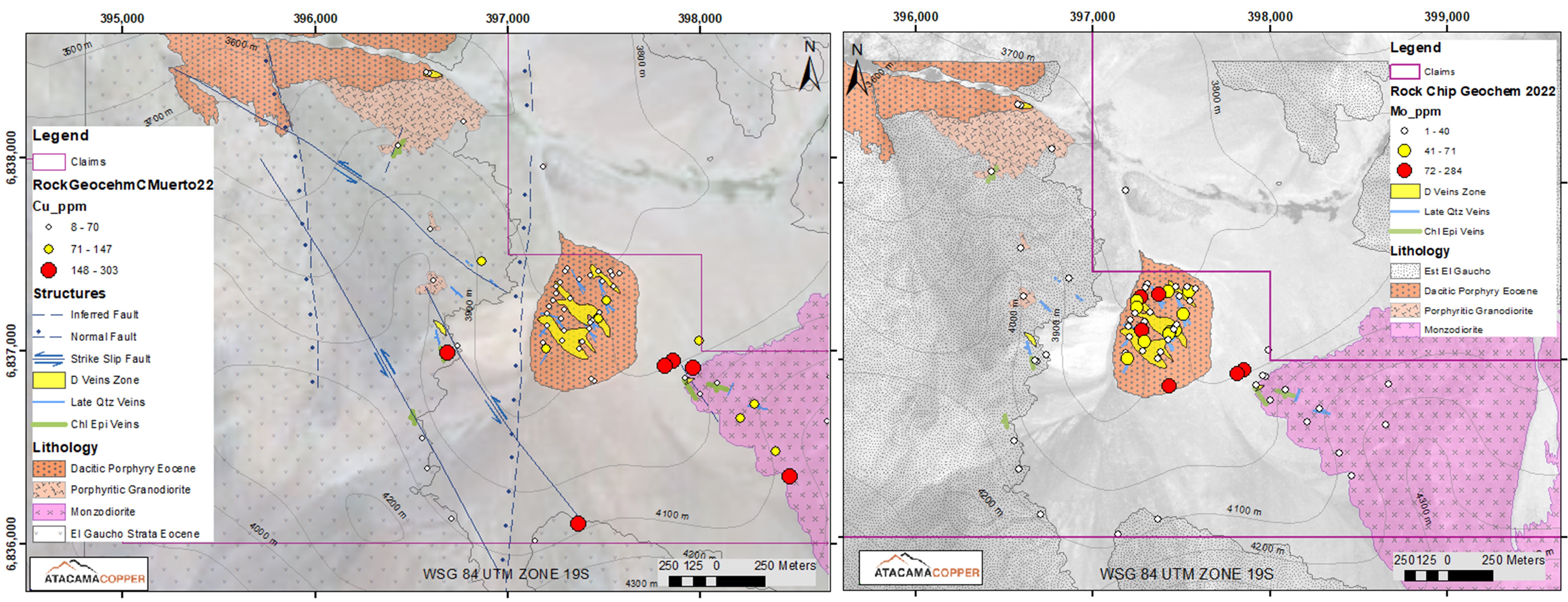 Figura 6: Resultados del estudio geoquímico de cobre y molibdeno en el área de Caballo Muerto.