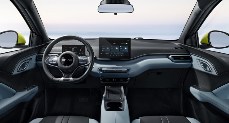 En su interior, el Dolphin Mini ofrece una pantalla de infoentretenimiento giratoria de 10,1 pulgadas, con Android Auto y Apple Carplay. Además, cuenta con un sistema de carga wireless para smartphones y puertos USB tipo A y C.
