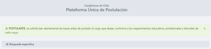 Carabineros de Chile anunció la apertura de procesos para obtener empleos disponibles en la institución a través de su página web, la Plataforma Única de Postulación.