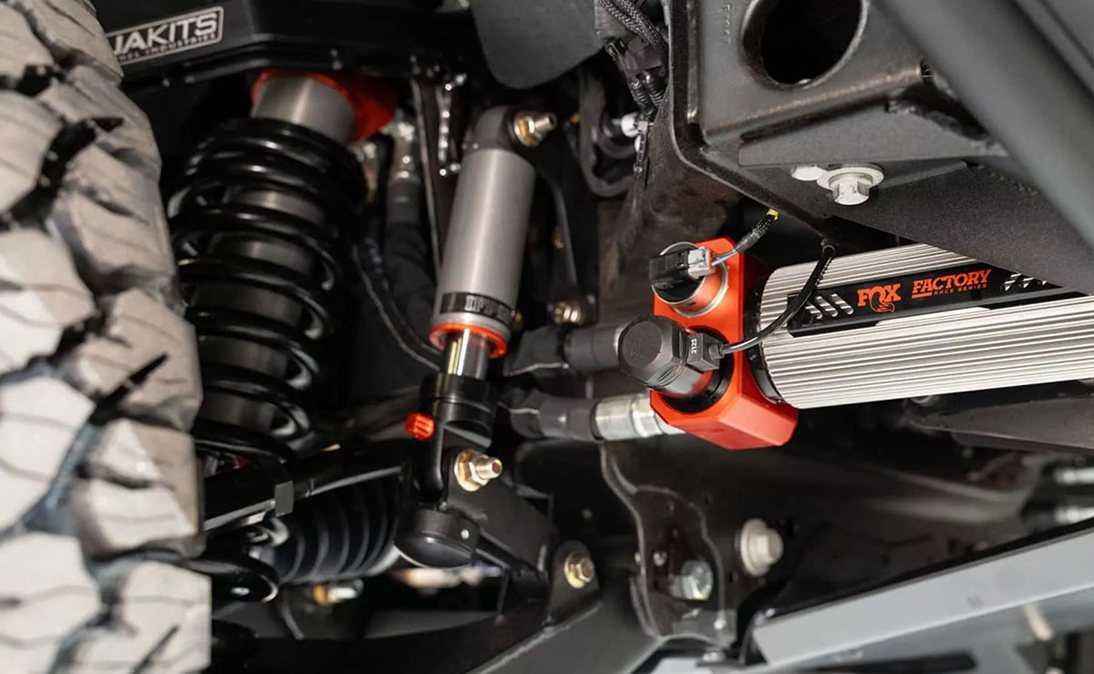En primer lugar, el esquema de suspensión fue modificado para un mejor manejo todoterreno veloz. Se instalaron nuevos amortiguadores de mayor recorrido en la parte delantera y resortes de mayor recorrido en la parte trasera, reemplazando las ballestas de serie. Además, se agregaron brazos de arrastre de aluminio, lo que permite a la pick up tener un recorrido de suspensión de 36 cm adelante y 38 cm atrás.