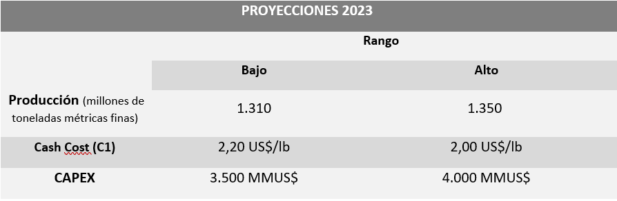 Estas medidas se suman a las definiciones implementadas para resolver los temas operacionales, lo que permitirá aumentar paulatinamente la producción a contar de 2024 hasta recuperar en 2030 una cifra cercana a 1,7 millones de toneladas.