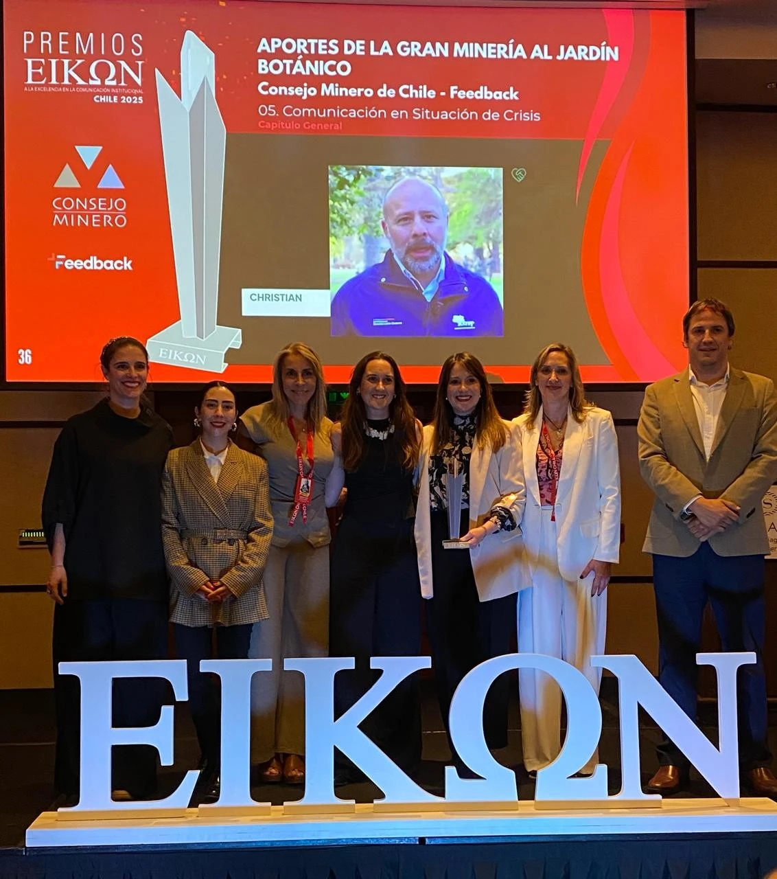 La gran minería, representada por el Consejo Minero, y Desafío Levantemos Chile fueron reconocidos en la edición 2025 de los Premios Eikon Chile, en la categoría “Comunicación en situación de crisis”, en el marco del Plan de Reconstrucción Integral del Jardín Botánico Nacional de Viña del Mar, una iniciativa que visibilizó el apoyo de las empresas socias del CM: Anglo American, Antofagasta Minerals, Barrick, BHP, Collahuasi, El Abra, Freeport-McMoran, Glencore, Gold Fields, Lundin Mining, Rio Tinto y Teck, tras el devastador incendio que afectó a la región de Valparaíso a comienzos de 2024.