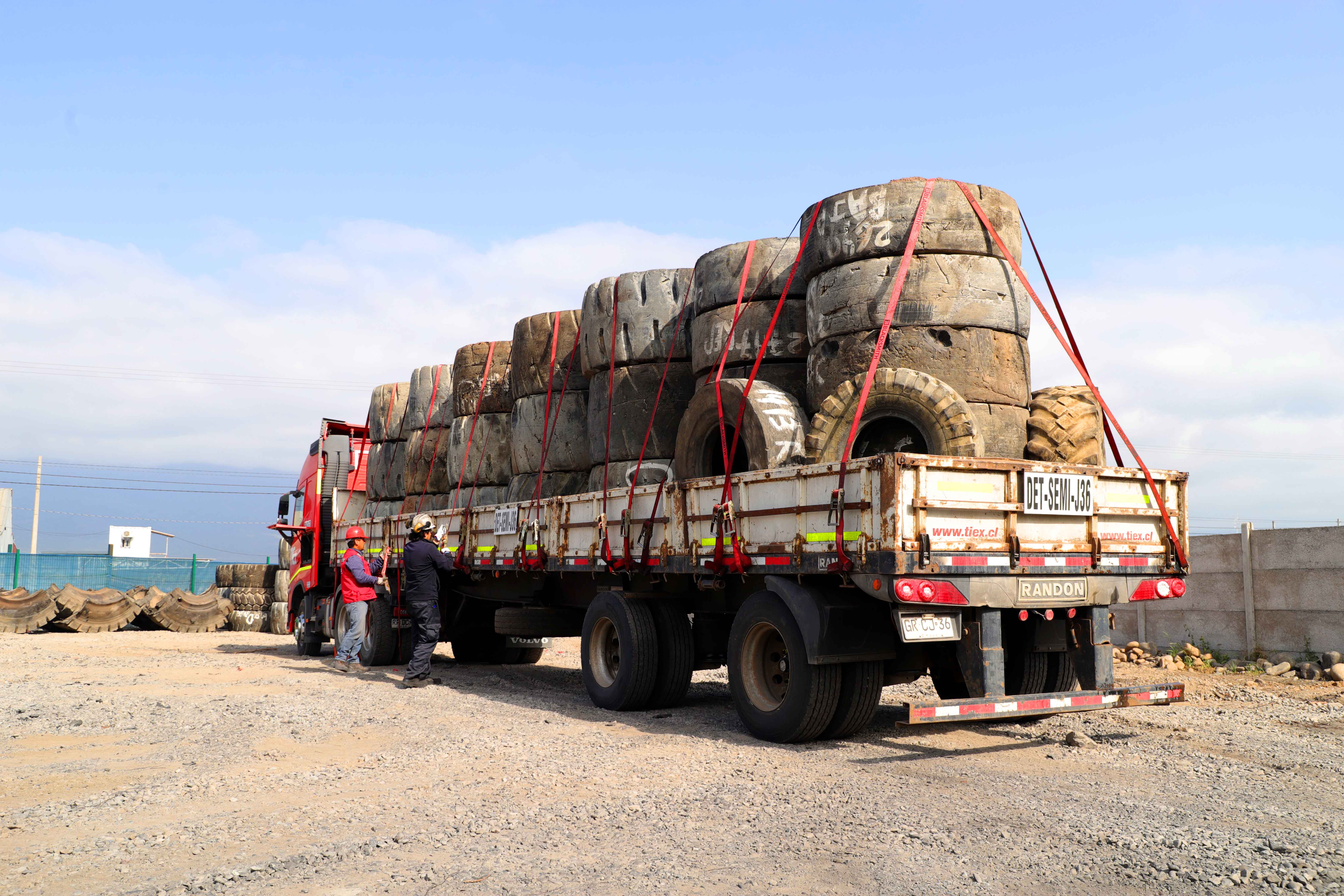 Los neumáticos fuera de uso son trasladados por la empresa especializada en transporte de carga industrial TIEx, desde el Centro de Manejo y Residuos (CMRIS) de la División El Teniente, en el sector de Caletones, a las instalaciones de los proveedores en San Francisco de Mostazal. Posteriormente, son tratados y valorizados bajo un proceso de economía circular, sin depositar subproductos en vertederos.