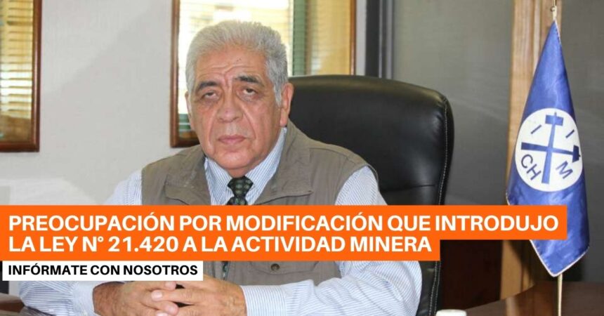 El Instituto de Ingenieros de Minas de Chile, una entidad que agrupa a todos los profesionales relacionados con la minería y que tiene como objetivo principal contribuir al país a través de este sector, desea expresar su preocupación sobre la «modificación que introdujo la Ley N° 21.420 a la actividad minera» señaló Sergio Demetrio, presidente de IIMCh. Esta modificación puede complicar el presente y futuro del sector minero y poner en riesgo su aporte al país.