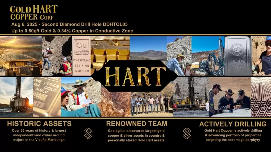 Gold Hart Copper Corp. (TSXV: HART) (la «Compañía«, «Gold Hart» o «HART«) se complace en anunciar los resultados del segundo pozo de perforación diamantina (DDHTOL05) en su propiedad insignia de oro, cobre y molibdeno Tolita en el distrito de Vicuña de Chile.