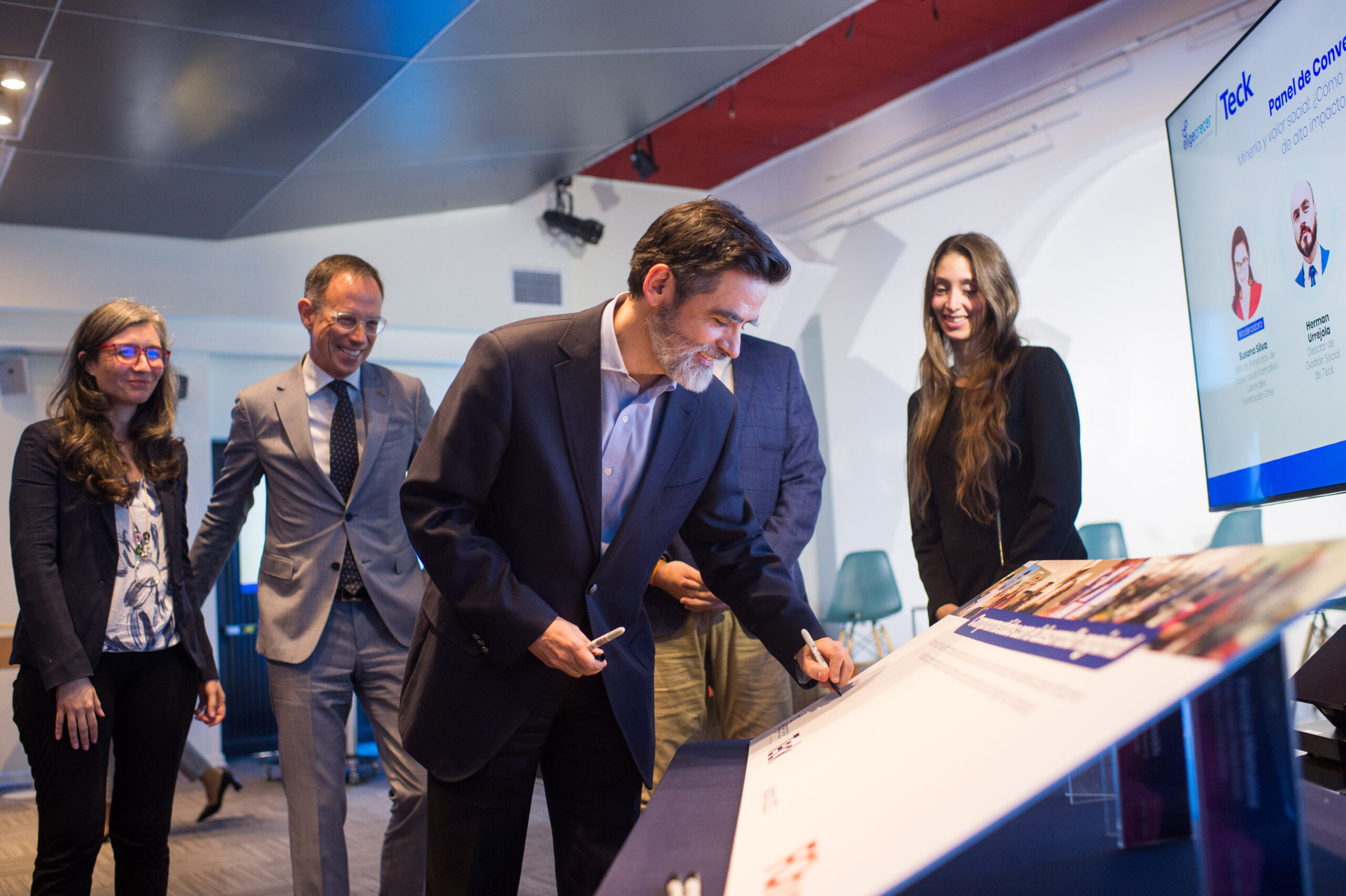 A la cita asistieron el director de Gestión Social y Comunidades de Teck, Herman Urrejola; el gerente general de Fundación Chile, Hernán Araneda; y el embajador de Canadá en Chile, Michael Gort. A ellos se sumaron los expositores del panel de conversación, el presidente ejecutivo del Consejo Minero, Joaquín Villarino, y la gerenta de Desarrollo Humano de FCh, Valentina Quiroga.