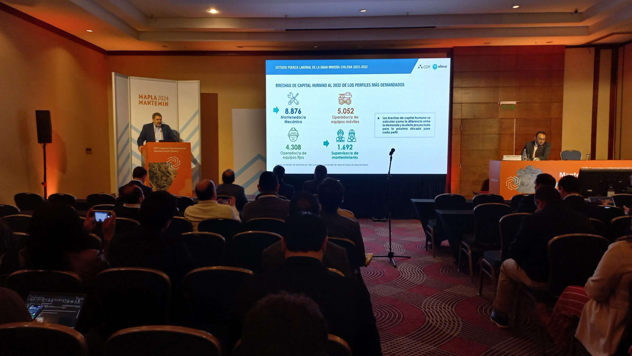 En la ciudad de Santiago se realizó la 20° versión del Congreso Internacional de Mantenimiento Minero, Mapla-Mantemin 2024, instancia en la cual la Alianza CCM-Eleva, representada por su director Vladimir Glasinovic, tuvo la oportunidad de presentar el Estudio de Fuerza Laboral de la Gran Minería Chilena 2023-2032, con un especial enfoque en las oportunidades y desafíos que tiene el mantenimiento minero en Chile.