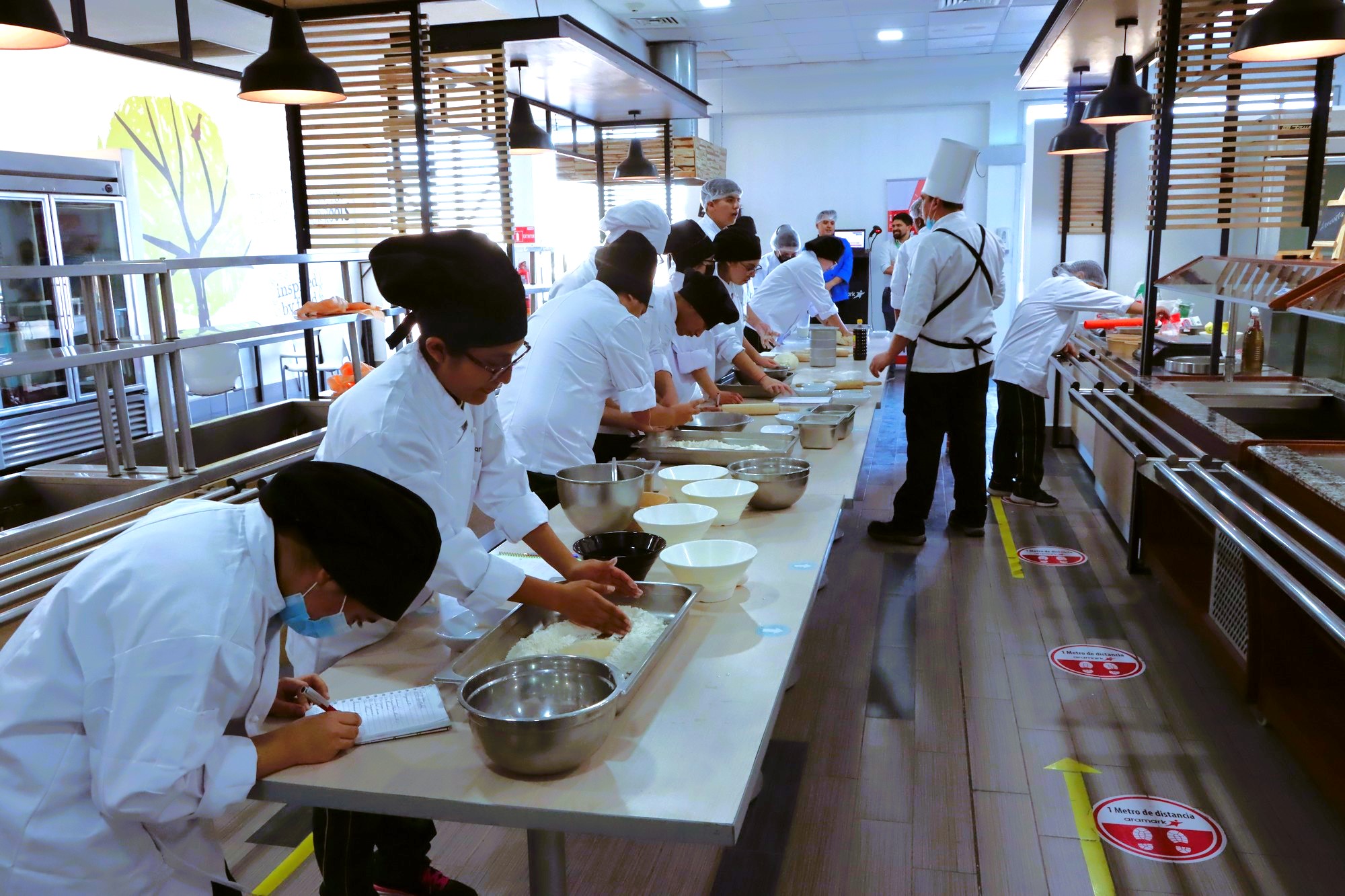Durante el año, las y los apoderados y alumnos participaron en talleres de sushi, panadería y bollería, repostería y cocina chilena, que fueron acompañados por profesionales de la Gerencia de Administración y dictados por profesores del establecimiento educacional e integrantes de Aramark.