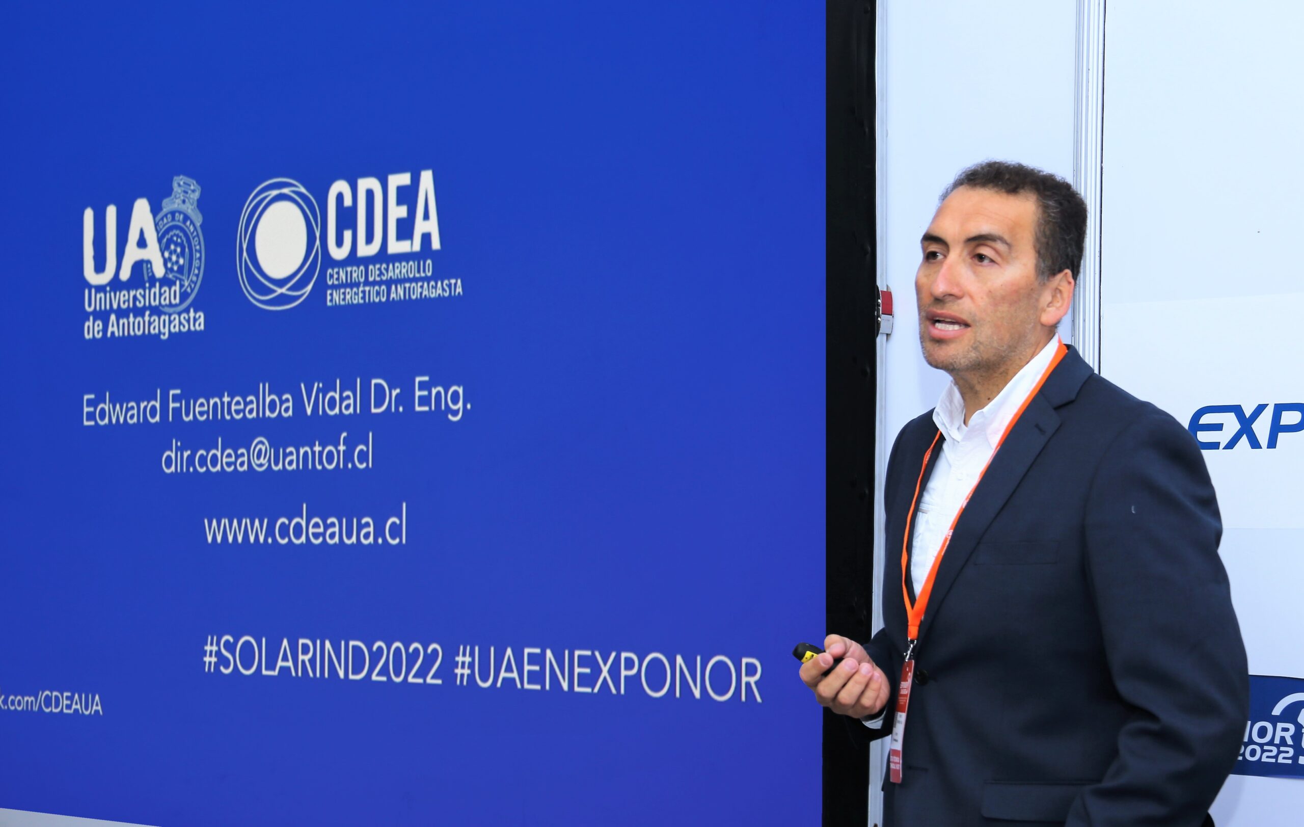 El director del CDEA, Dr. Edward Fuentealba, señaló que es la tercera vez que organizan este tipo de encuentros en Exponor. “El workshop se orientó hacia la sustentabilidad energética, específicamente a la forma de viabilizar esta matriz con el almacenamiento y las nuevas tecnologías, junto con las perspectivas del Hidrógeno Solar y el reciclaje de paneles”, dijo.