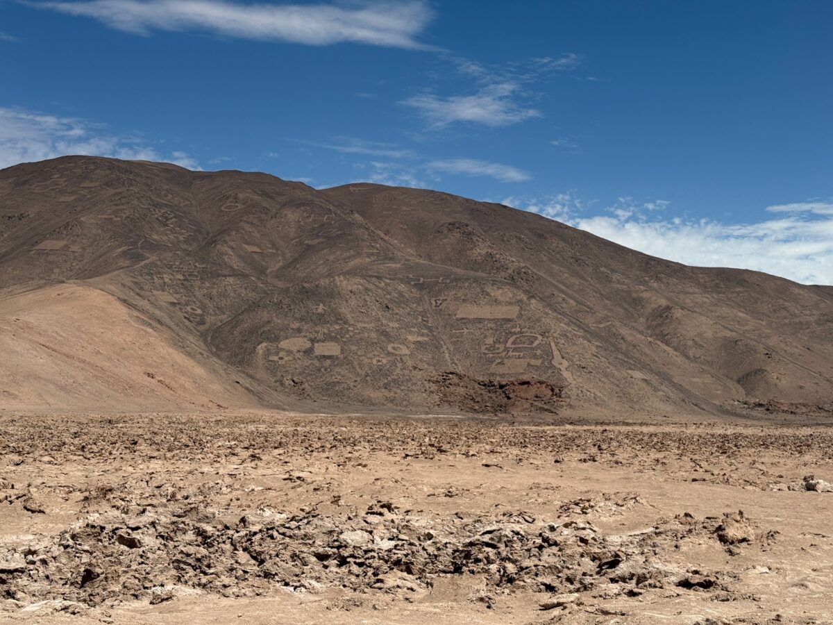 El Complejo Arqueológico Geoglifos de Pintados reúne más de 500 figuras distribuidas en alrededor de 60 paneles, que datan entre los años 700 y 1500 d.C. Estos geoglifos, realizados con técnicas de acumulación y remoción de rocas, representan formas geométricas, animales marinos y terrestres, así como escenas humanas de caza, pesca y caravaneo.