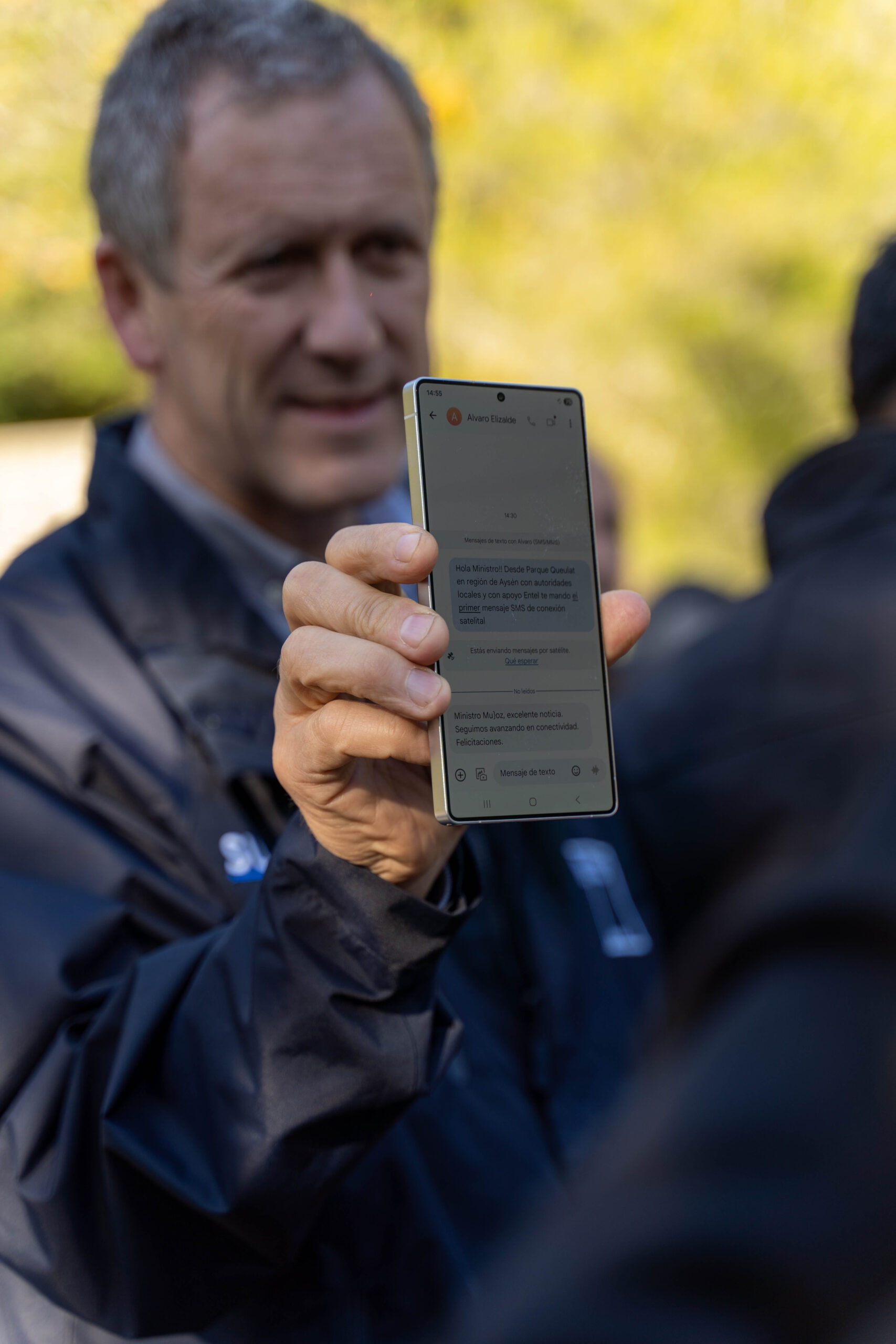 “Hola ministro, te mando el primer mensaje SMS de conexión satelital al celular” fue el mensaje que recibió el ministro del Interior, Álvaro Elizalde desde el Parque Queulat en la Región de Aysén. La especial características de este SMS, que mandó el ministro de Transporte y Telecomunicaciones, Juan Carlos Muñoz, es que fue enviado en una zona sin alcance de la red móvil terrestre, gracias al servicio de cobertura satelital al teléfono, tecnología que permite comunicarse a través de la red satelital de Entel y Starlink, conectado con la tecnología Direct to Cell de Starlink, y que ya se está probando en Chile.