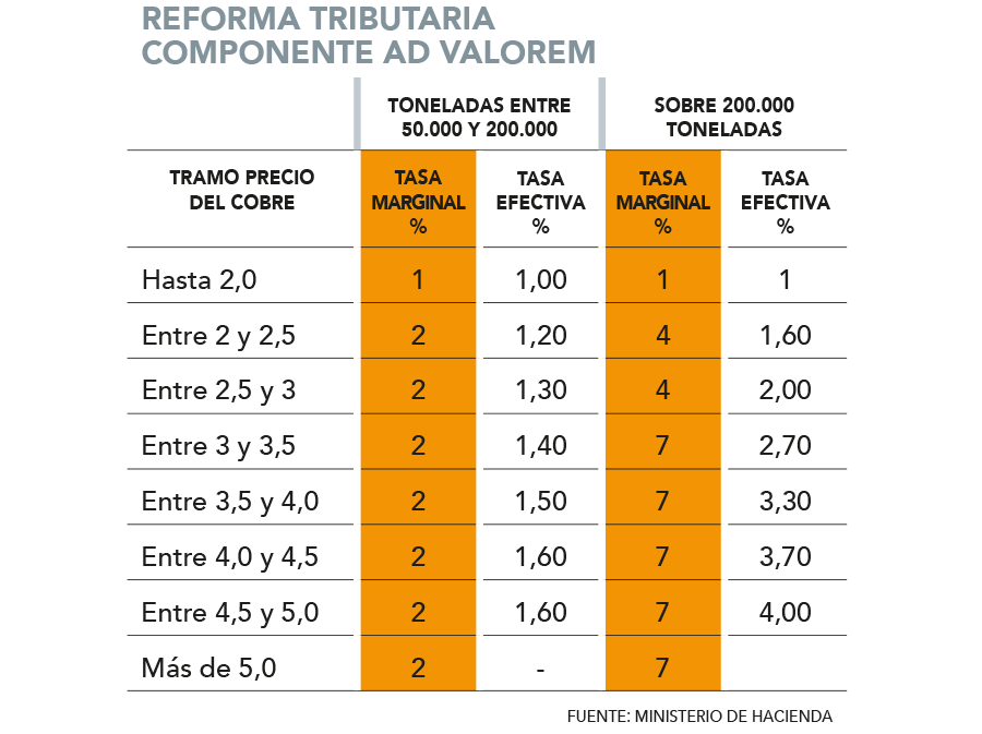 Para los expertos, lo más preocupante sigue siendo la componente Ad-Valorem o sobre las ventas. “No toma en consideración la realidad de la empresa, que incluso con pérdidas debería pagar este impuesto. Ignora realidades como los costos elevados, la inflación o la situación de los yacimientos con leyes que son bajas (entre 0,3% a 0,6%)”, señala Montt.
