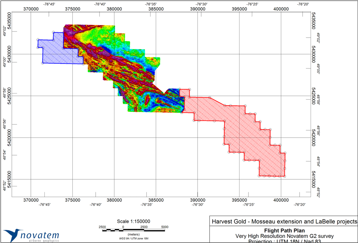Rick Mark, presidente y director ejecutivo de Harvest Gold, afirma: «Todos estamos muy emocionados de avanzar en la exploración en nuestras tres propiedades del área de Urban-Barry, simultáneamente. Esto incluye nuestro tan esperado programa de perforación diamantina de 5000 metros en Mosseau y un extenso examen geoquímico por primera vez en la gran propiedad de Urban-Barry. Y ahora hemos completado una primera mirada a otra propiedad considerable, Labelle, a través de un programa de geofísica aérea que continúa con el muy revelador estudio magnético realizado el año pasado en Mosseau».