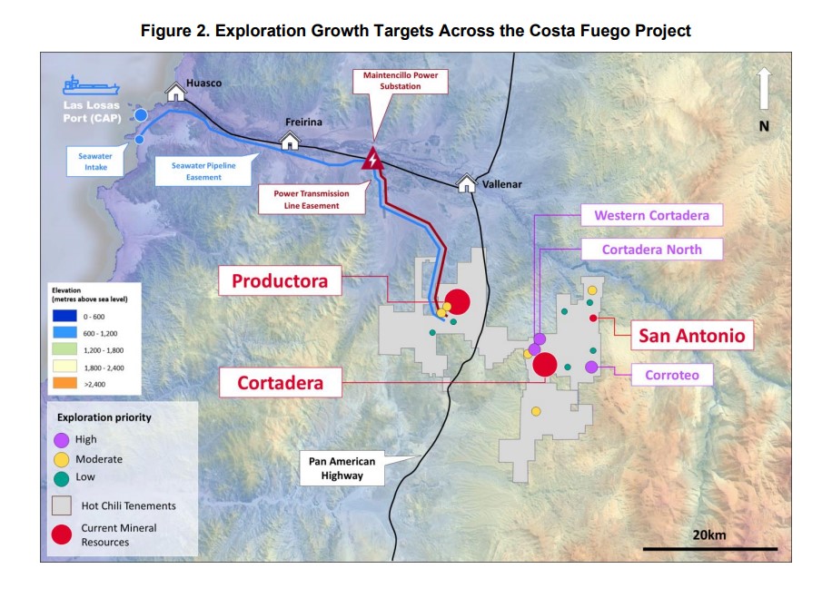 Hot Chili Limited (ASX: HCH) (TSXV: HCH) (OTCQX: HHLKF) («Hot Chili» o la «Compañía») se complace en anunciar que se ha reiniciado la perforación en la extensión occidental del recurso de pórfido de Cortadera, parte del Proyecto de Cobre-Oro Costa Fuego de la Compañía («Costa Fuego» o «el Proyecto») ubicado a 600 km al norte de Santiago, a baja altura (<1.000 m) en la cordillera costera de la Región de Atacama, Chile.