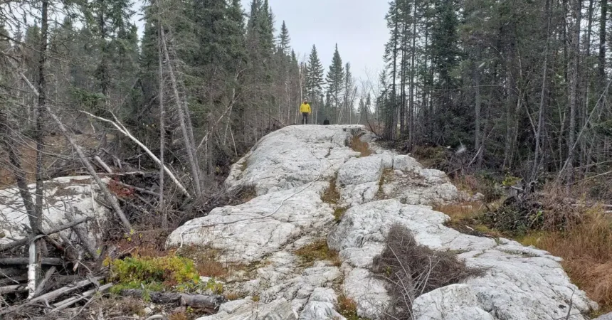 De las seis nuevas zonas mineralizadas de espodumena, Jackpot West y Cosgrave North tienen pegmatita de litio in situ en la superficie (Figura 3). Las zonas de Jackpot South y Newkirk consisten en subcultivos y rocas, mientras que la zona suroeste y la zona de Blay Lake están definidas por rocas (Figura 3). Las zonas de Jackpot South, Blay Lake, Jackpot West, Cosgrave North y Newkirk estarán permitidas para la perforación diamantina y el desmonte del lecho rocoso que se completará en el invierno y la primavera de 2026.