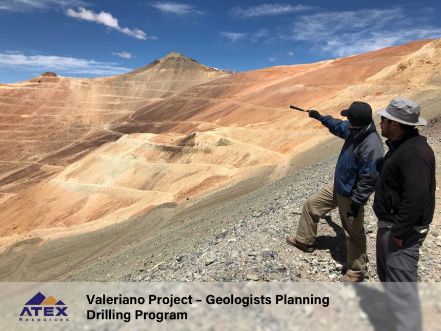 Valeriano alberga un gran depósito de pórfido de cobre y oro cubierto por un depósito de oro epitermal oxidado cerca de la superficie. En 2022, ATEX completó la primera prueba de perforación limitada de la Compañía del sistema de pórfido de cobre y oro que ahora está siendo seguida con una campaña de perforación direccional para extender la tendencia de alto grado, probar nuevos objetivos y expandir la envoltura mineralizada.