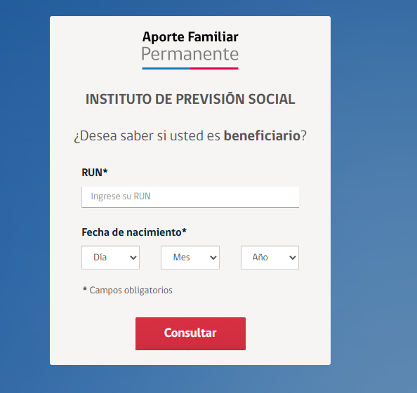 La consulta de fecha y forma de pago se puede realizar en www.aportefamiliar.cl, ingresando RUT y fecha de nacimiento.