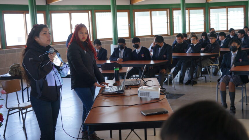 Una Jefa de Turno en el área Mina, en conjunto con la primera mujer en Perforación y Tronadura de Minera El Abra, que además se inició como estudiante en práctica, fueron las encargadas de entregar su experiencia en una charla vocacional a 180 alumnos y alumnas de segundo medio del Colegio Don Bosco quienes deben escoger una especialidad.