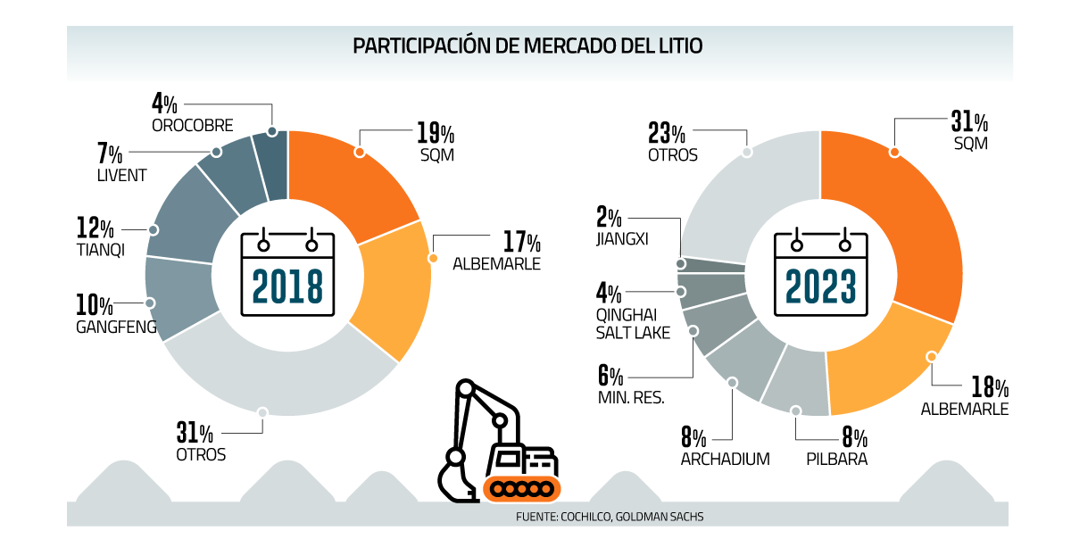 Entre los expertos de litio hay consenso en que Tianqi de 2018 es muy distinta de la compañía que existe en 2024. Para empezar, la asiática ha ido bajando en participación de mercado: si en 2018 estaba entre las principales tres productoras de litio, en 2024 ni siquiera está en las primeras 10 .