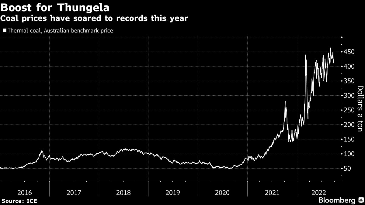 La crisis del suministro de energía en Europa, empeorada por la invasión rusa de Ucrania, ha impulsado los precios del carbón a máximos históricos este año, lo que ha ayudado a que Thungela tenga el mejor desempeño en el mercado de valores de Johannesburgo. Sin embargo, existen posibles vientos en contra que pueden explicar la valoración restringida: la perspectiva a largo plazo de sus volúmenes de producción para uno, a medida que sus depósitos mineros se agotan gradualmente, según Coronation Fund Managers Ltd.