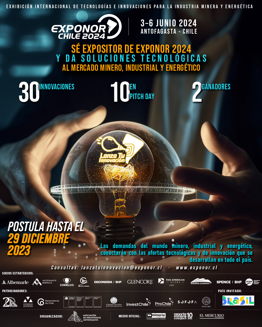 La postulación para la séptima versión de Lanza Tu Innovación, finaliza el 29 de diciembre, y de un total de 30 seleccionados, que participarán como expositor del 3 al 6 de junio en EXPONOR 2024, 10 serán escogidos para Pitch Day -con previa capacitación-, y 2 de ellos ganarán $6 millones y $4 millones, respectivamente, por el primer y segundo lugar.
