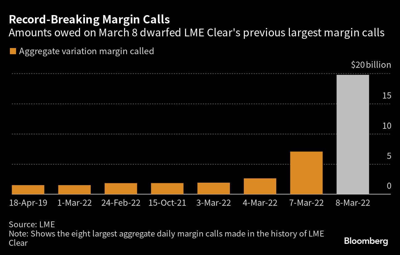En la mañana del 7 de marzo, los precios del níquel subieron a 36.000 dólares la tonelada y las tensiones se hicieron evidentes en el mercado. Cuatro corredores de la LME se retrasaron en el pago de sus llamadas de margen esa mañana.