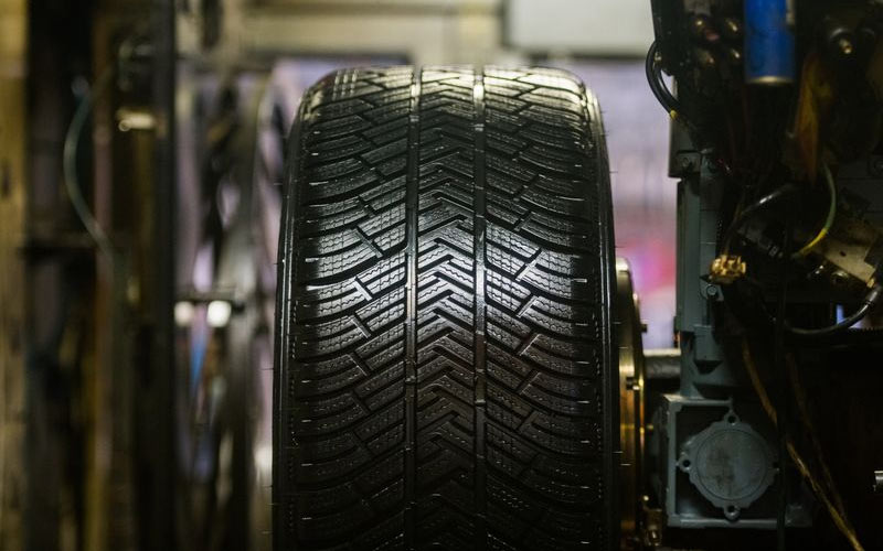 Pero los ejecutivos e ingenieros del sector automovilístico tienen que hacer una serie de compromisos vertiginosamente complejos a la hora de equipar un coche en la realidad. Por cada fracción de tamaño y/o adherencia, el vehículo sacrifica kilometraje y eficiencia. Lo mismo ocurre con los coches de gasolina, pero los coches eléctricos suelen ser mucho más pesados que los de combustión interna de tamaño similar, lo que significa que sus neumáticos tienen que soportar más presión y desgaste. También son mucho más silenciosos, por lo que los ingenieros de neumáticos se afanan en el ruido, llegando incluso a bombear espuma acústica en la cavidad del caucho.