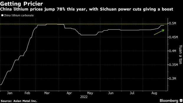 Los precios del carbonato de litio han subido casi un 80 % en China en lo que va del año, y la reciente crisis energética en Sichuan ha dado un impulso al repunte. La provincia, que alberga más de una quinta parte de la producción de litio de China, sufrió dos semanas de cortes de electricidad en agosto. Eso creó interrupciones en el suministro en un mercado ya exprimido, lo que acercó al metal a niveles récord.