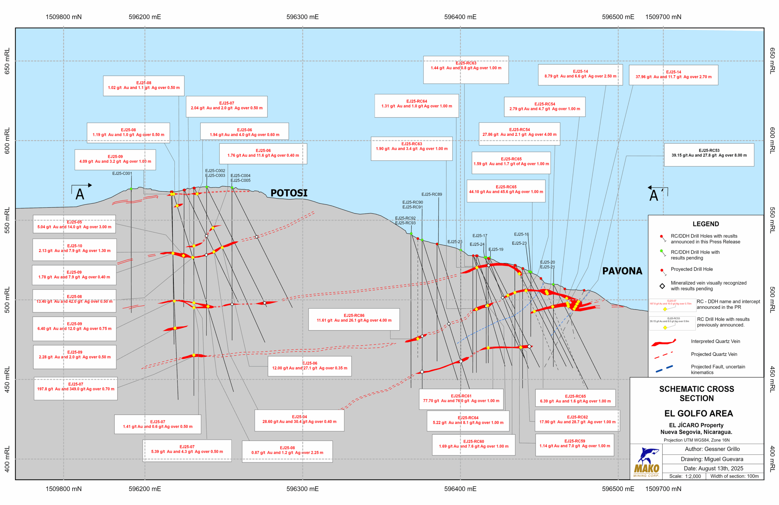 Mako Mining Corp. (TSXV:MKO) (OTCQX:MAKOF) («Mako» o la «Compañía«) se complace en informar resultados adicionales del programa de perforación diamantina y circulación inversa («RC») de 2025 en el área de El Golfo dentro de la Concesión El Jícaro ubicada inmediatamente al sur de los depósitos de oro Las Conchitas y San Albino de la compañía en Nicaragua, 100% propiedad de la compañía. que actualmente están siendo explotados por la Compañía (consulte la Figura 1).