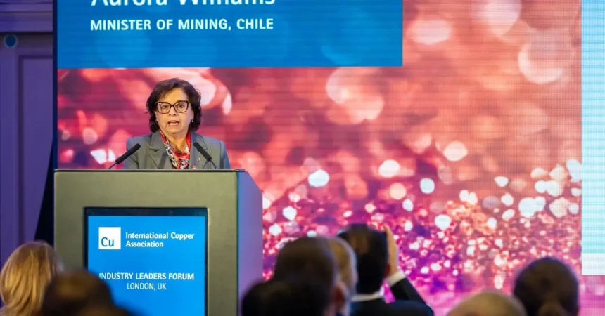 Con una presentación de 20 minutos en el encuentro internacional Industry Leaders Forum, organizado por la International Copper Association, ICA, la ministra de Minería, Aurora Williams, culminó la participación de la delegación chilena en la Semana de la Bolsa de Metales de Londres, LME Week 2025.