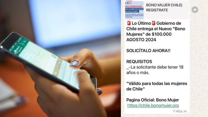 La estafa está circulando a través de redes sociales, especialmente en WhatsApp, y se presenta bajo la apariencia de un supuesto “Bono Mujeres” que ofrece $100 mil este mes.