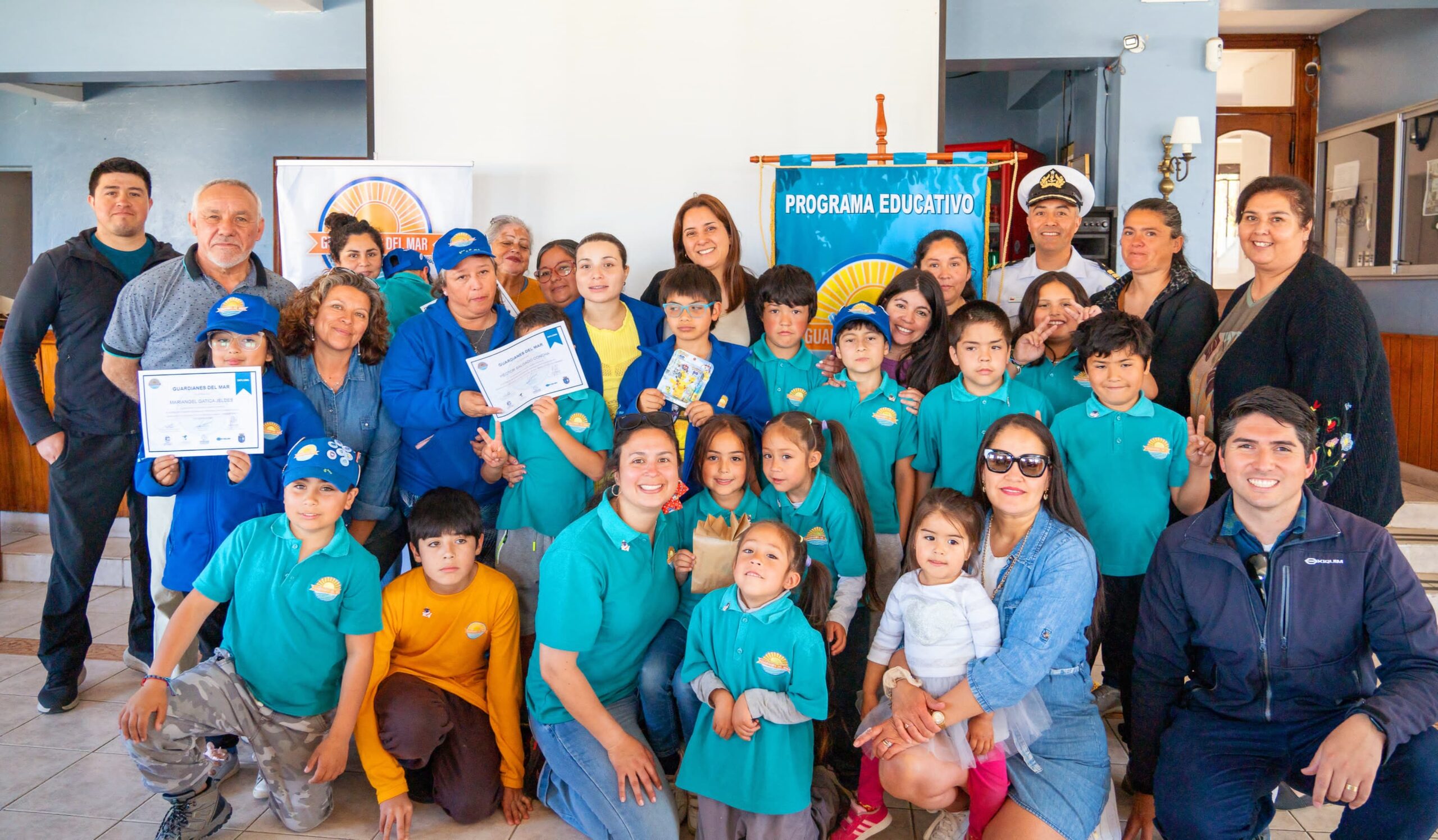 El inicio de la jornada se desarrolló en el Club de Yates de Quintero, donde los 26 participantes, quienes representan a diferentes instituciones educacionales de la comuna, recibieron un certificado que los reconoce como Guardianes del Mar. En la oportunidad, cada uno de ellos fue destacado con un valor que los representó durante este año de acuerdo con su comportamiento y desempeño, como colaboración, respeto, empatía, solidaridad y honestidad.