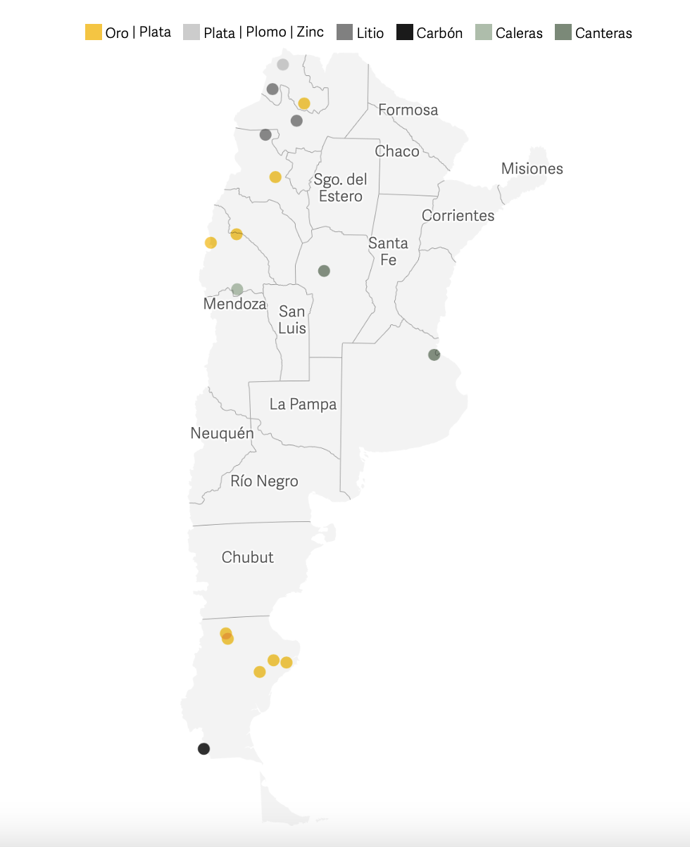 Entre los proyectos que están en operación, los más importantes en cuanto al volumen de exportaciones son Veladero, en la provincia de San Juan (oro y plata), operado por la canadiense Barrick Gold y que tendrá una ampliación por US$ 140 millones; Cerro Vanguardia, operada por la minera Anglogold y Cerro Negro, por la empresa Newmont. También están en operación los proyectos de litio de Olaroz. a cargo de la minera AllKem y Fénix, operado por la firma Livent.