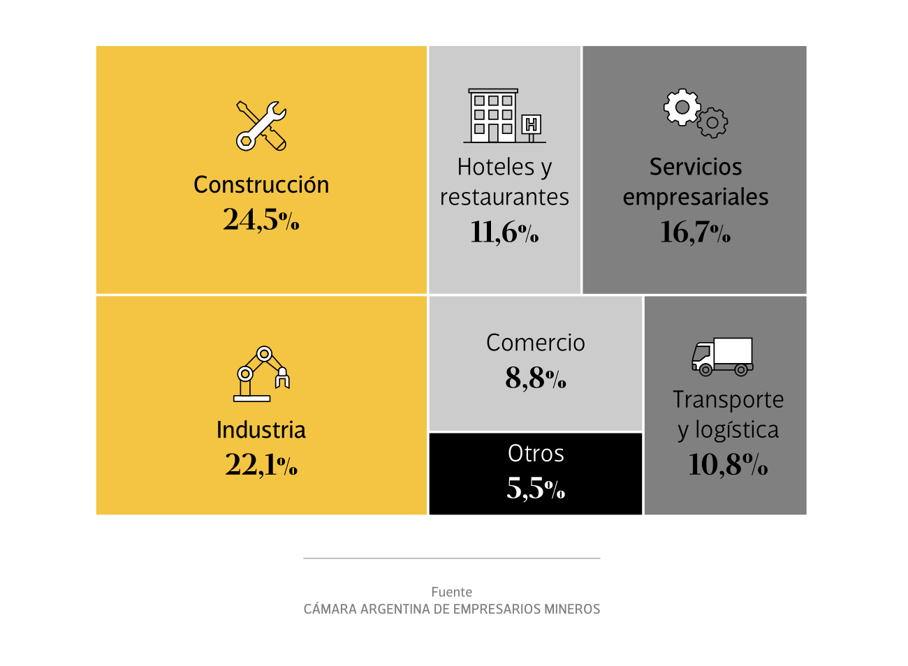 Estos sectores productivos generan puestos de trabajo que indirectamente se pueden atribuír a la minería.