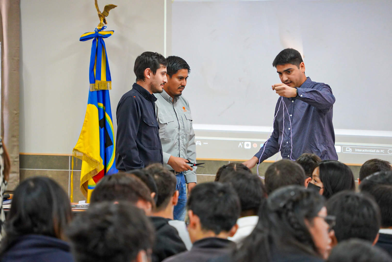 Los ingenieros Jorge Daroch, Juan Santiago y Ricardo Godoy cautivaron la atención de los estudiantes mediante una presentación lúdica. Durante la sesión, compartieron sus experiencias de vida y detallaron los procesos y aspectos relevantes de sus respectivas áreas de trabajo. Dada la audiencia conformada por jóvenes a punto de elegir especialidades con presencia en la minería, la charla resultó especialmente pertinente.