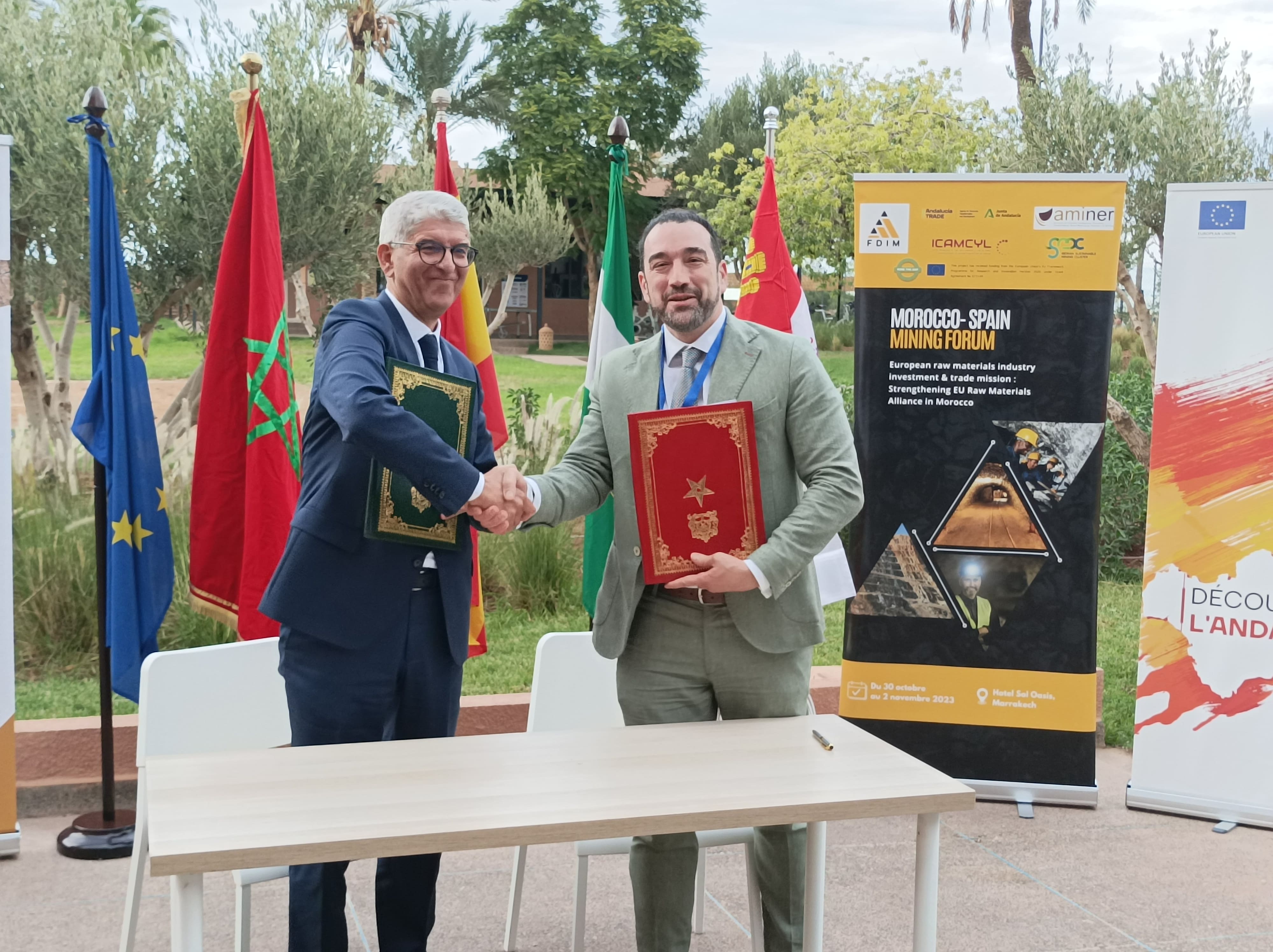 En el marco del Foro Minero Marruecos-España, el presidente de la Federación de la Industria Minera de Marruecos (FDIM), Mohammed Cherrat, y la gerente ejecutiva de AMINER han firmado un convenio de colaboración para promocionar oportunidades de inversión y de prestaciones de servicios relativas al sector minero en Marruecos y en Andalucía.