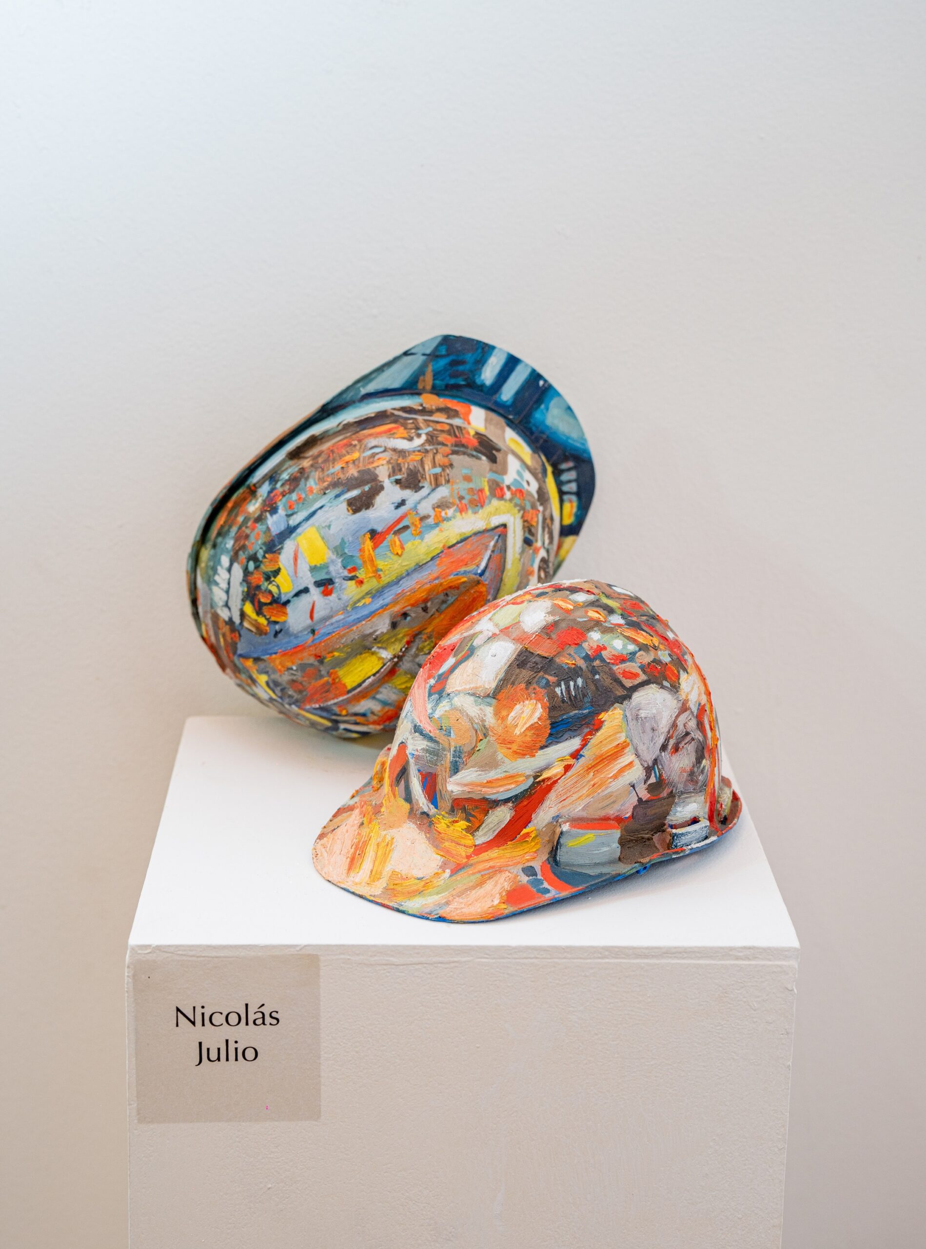 Soledad Neira, expositora en esta muestra y directora de la Galería Fondo y Forma, explicó que “Casco Minero” es una invitación a sostener un diálogo profundo sobre diversas realidades, en torno a esta herramienta de trabajo de uso personal.