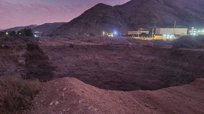 También es importante señalar que diariamente se ha utilizado un dron para monitorear el sector del hundimiento, “el que actualmente tiene 36.5 metros de diámetro en su parte superior y 62 metros de profundidad. Hay que aclarar que originalmente tenía 64 metros, pero ha disminuido debido a la caída de material al fondo. Además, se observan diversos tipos de materiales coluviales con distintas características, como limos, arcillas, gravas etc.”, agregó Montenegro.